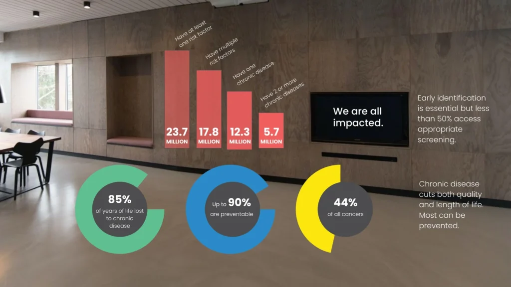 Revolutionising chronic disease prevention by empowering individuals to proactively manage their health and making clinicians lives easier through advanced automation.